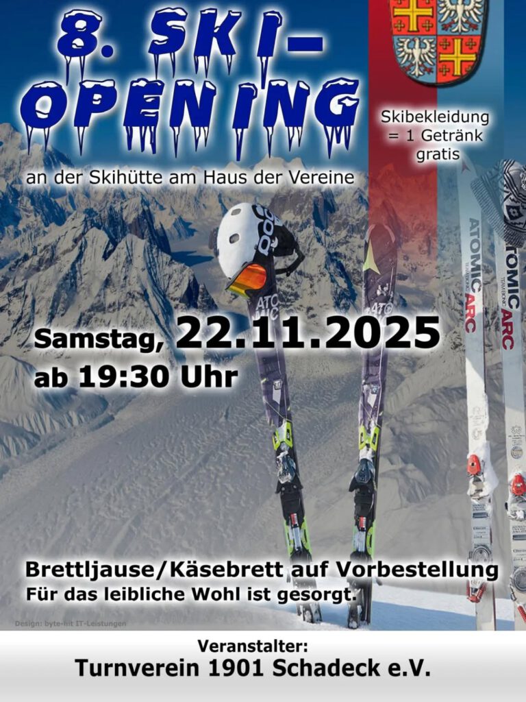 8. Ski-OpeningBernd Hintschitz24. Oktober 2025News Nur noch vier Wochen bis zu unserem 8. Ski-Opening! Vorheriger Beitrag Schadecker Fahne: Bestellaktion Nächster Beitrag Neues Vereinslogo